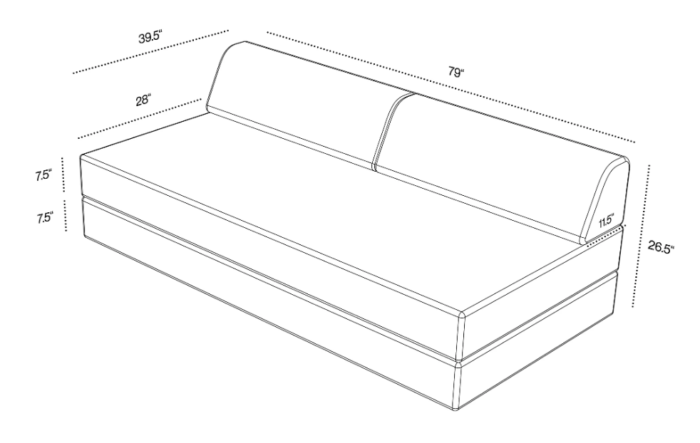 • 2x Upholstered Mattress – 39.4 in. x 78.8 in., Height: 7.5 in.