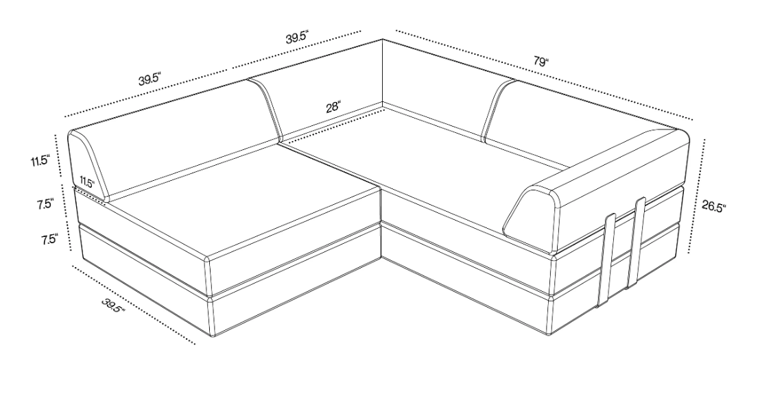 • 2x Corner Backrest – Dimensions: 11.4 in. x 39.4 in., Height: 11.4 in.