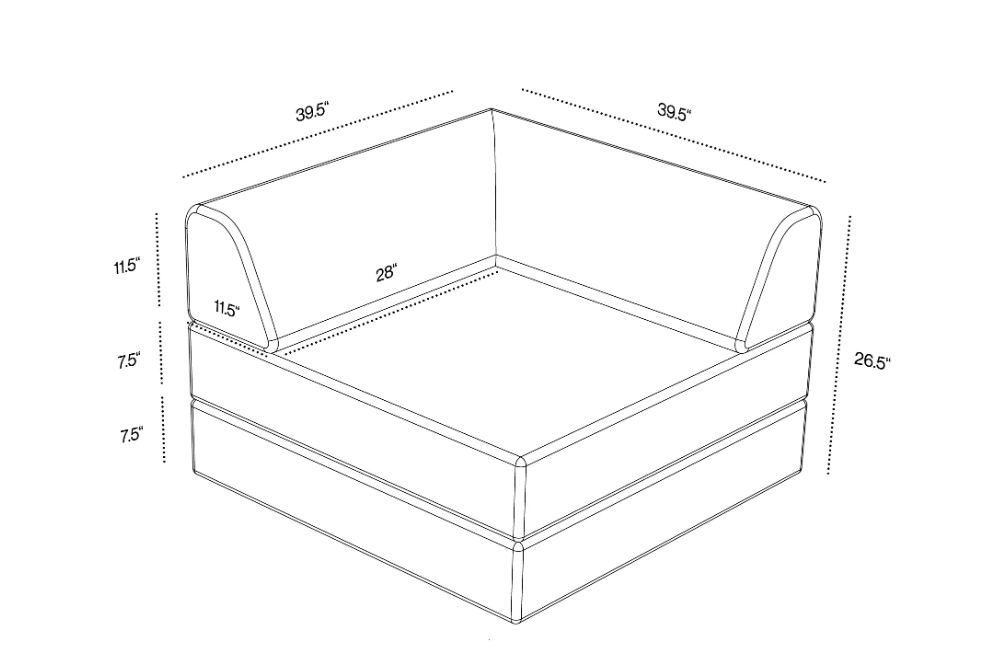 • 1x Corner Backrest – 11.4 in. x 39.4 in., Height: 11.4 in.