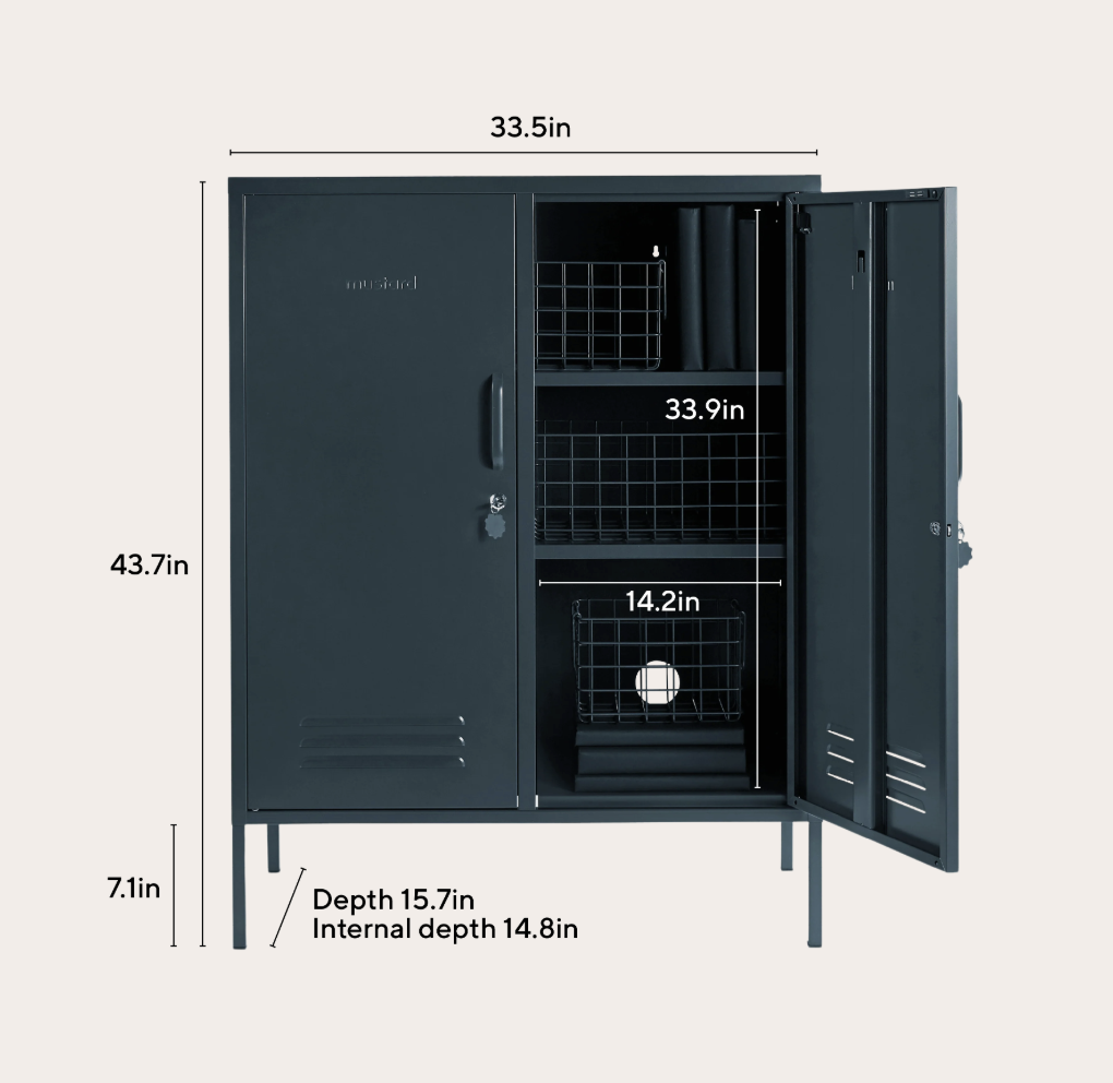 Handles, locks, custom keyrings, Mustard logo and air vents. Plus, the whole locker is smooth, matte and magnetic!
